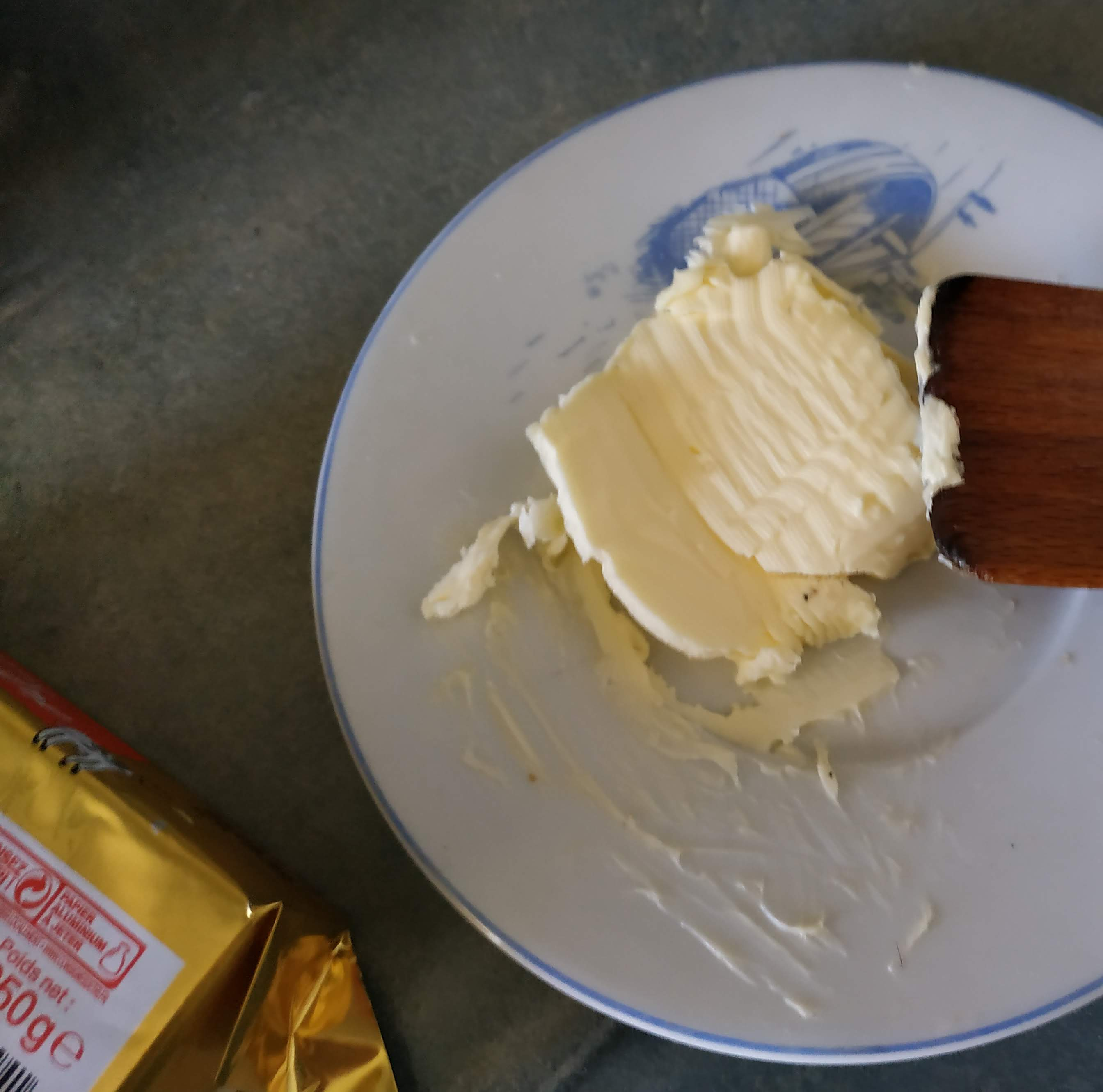 la voici: 50 gr de farine correspond à un grande cuillère à soupe bien remplie et bombée;et 50 gr de beurre ,c’est à peu près la même chose !