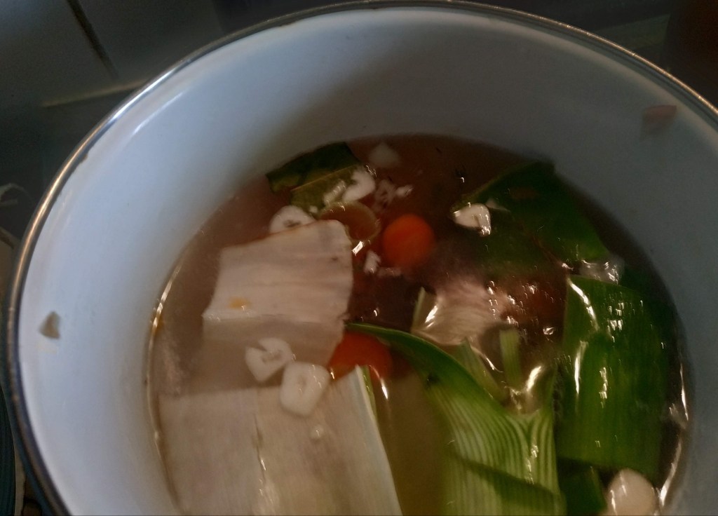 Portez le tout à ébullition puis laisser mijoter à feu doux pendant dix minutes;Filtrez,et voilà du bouillon prêt à l’emploi.
