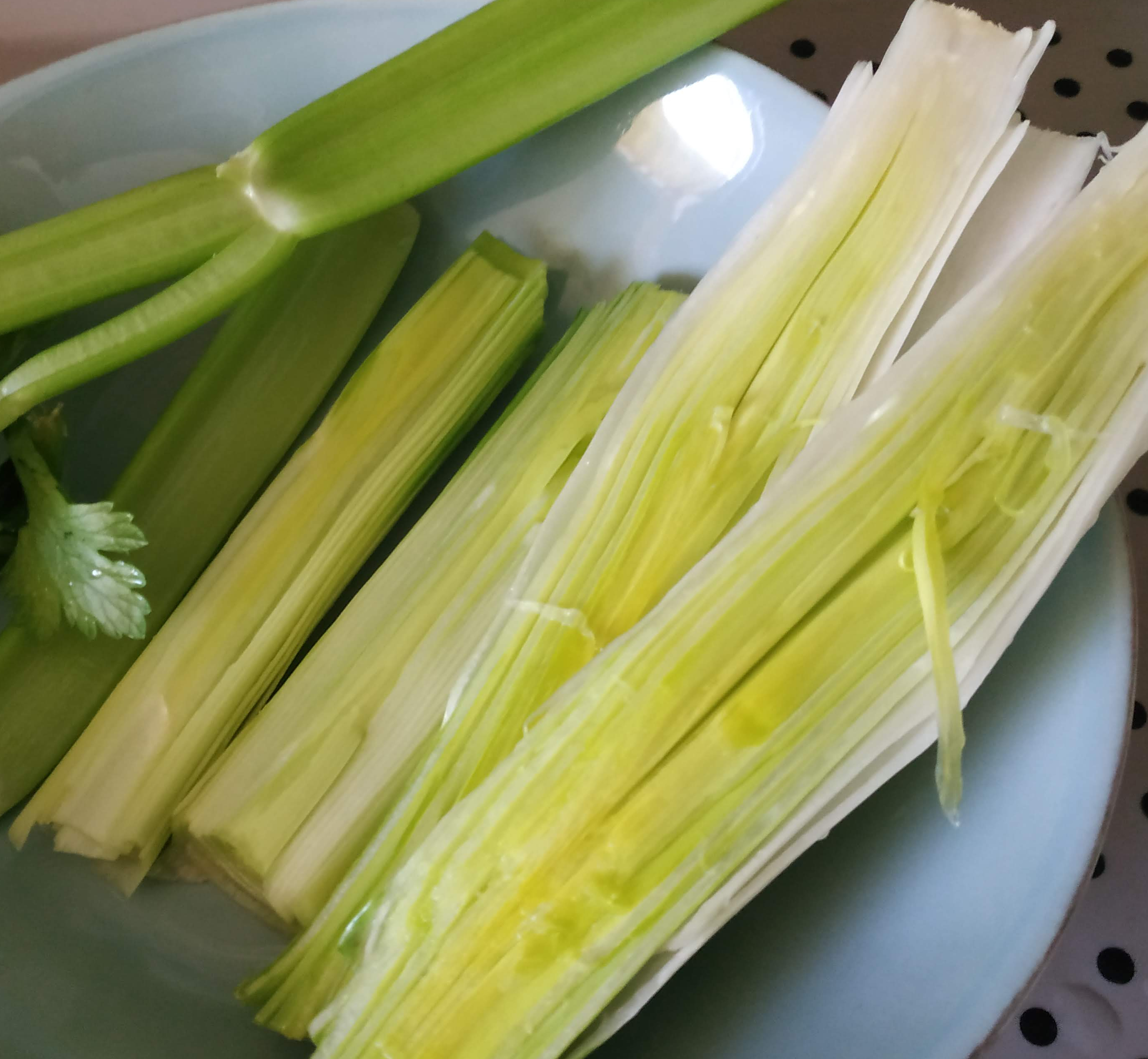 1/Couper les poireaux en deux et les fendre pour les laver abondamment à l’eau froide du robinet.