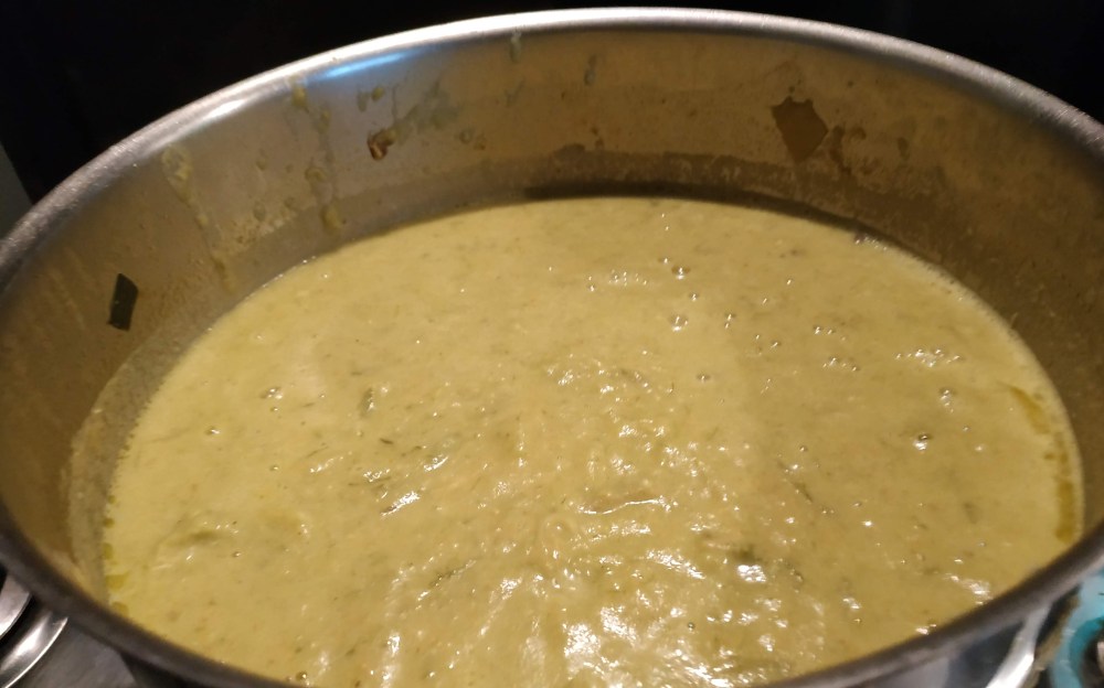 8/ Éteindre le feu puis mixer et ajouter la crème fraîche.