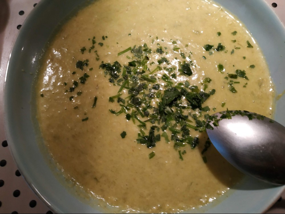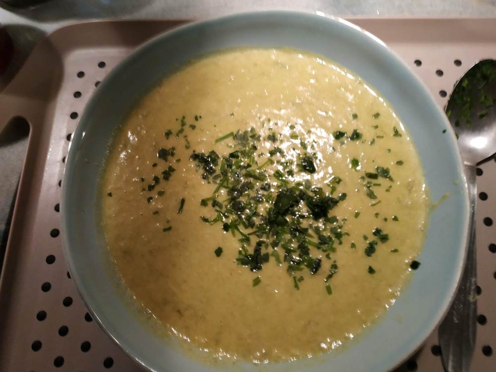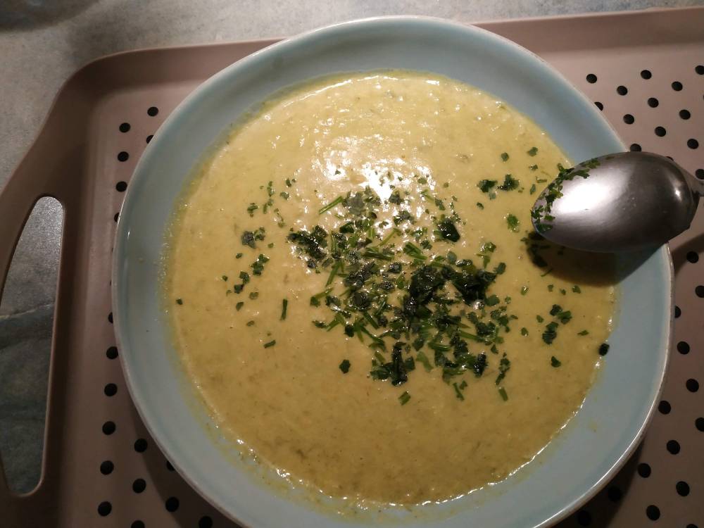 Ou alors, on arrive à se contenter de quelque chose de rapide de sain et économique tel que ce petit velouté de poireaux et pommes de terre très rapide et simple à réaliser. suivez moi: