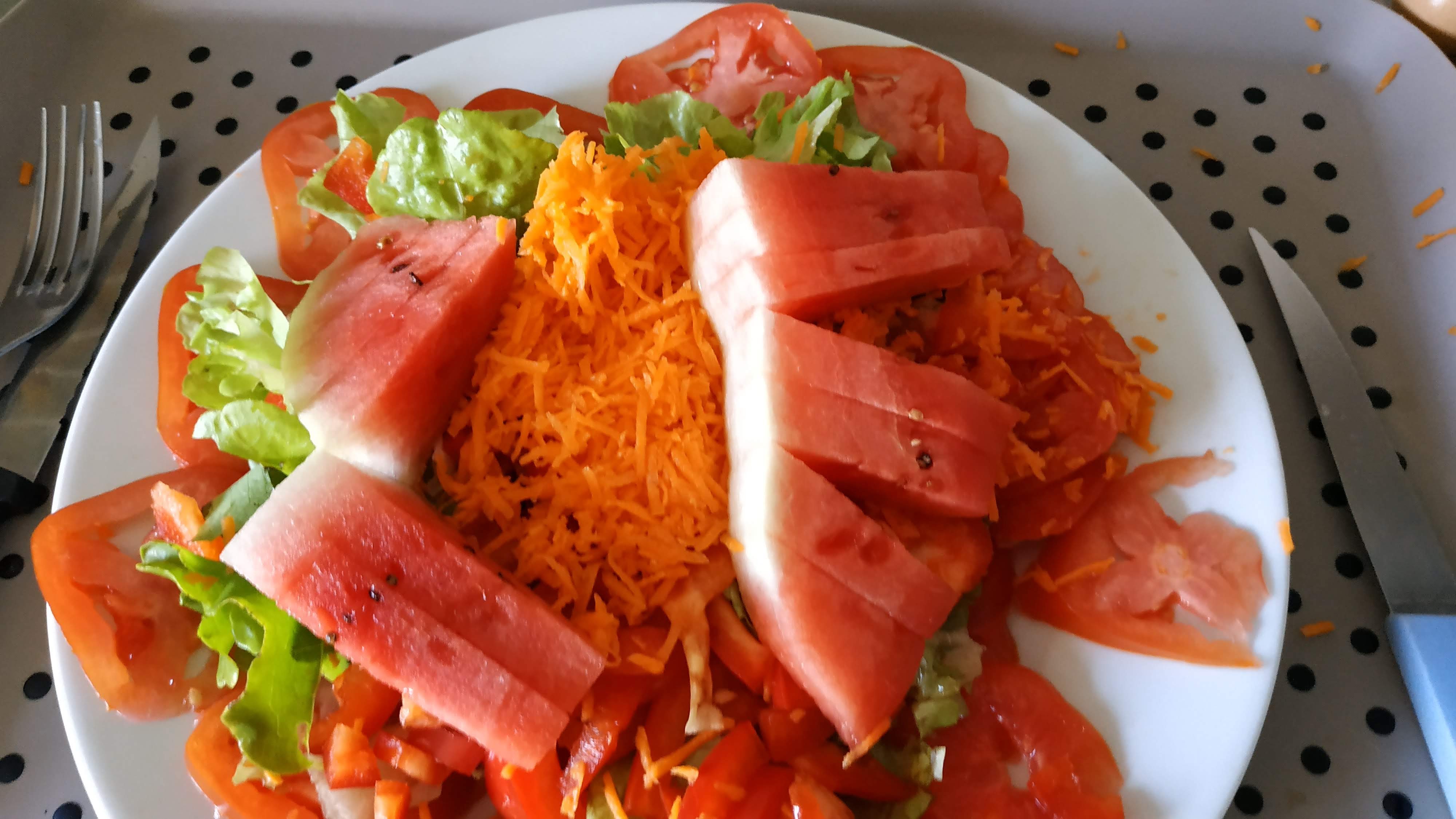 Des tomates gorgées de soleil etc…de la pastèque juteuse et douce: Voilà de quoi se régaler! Et passer un bon moment à table.