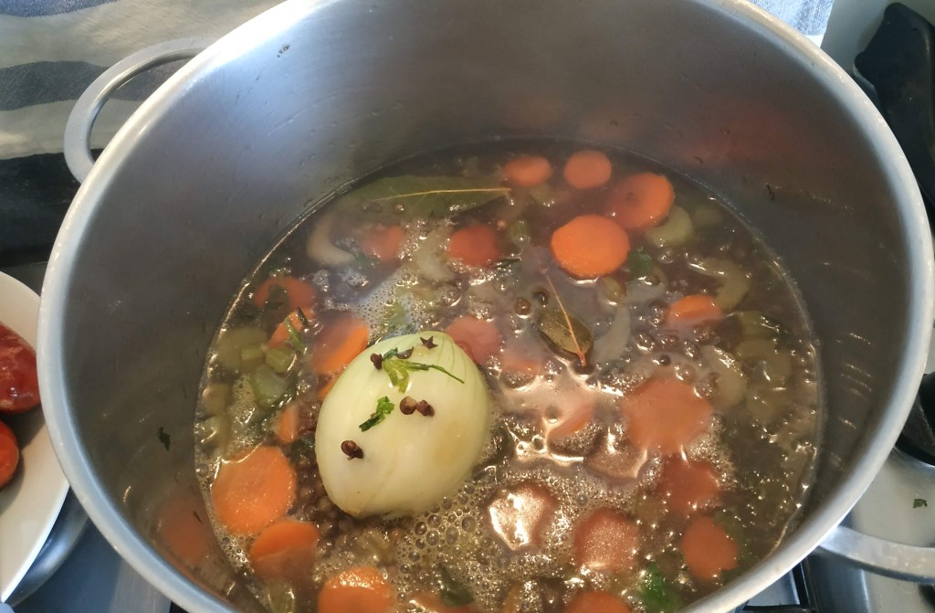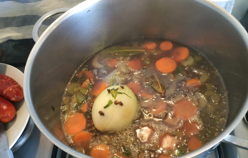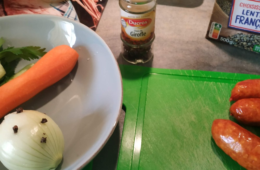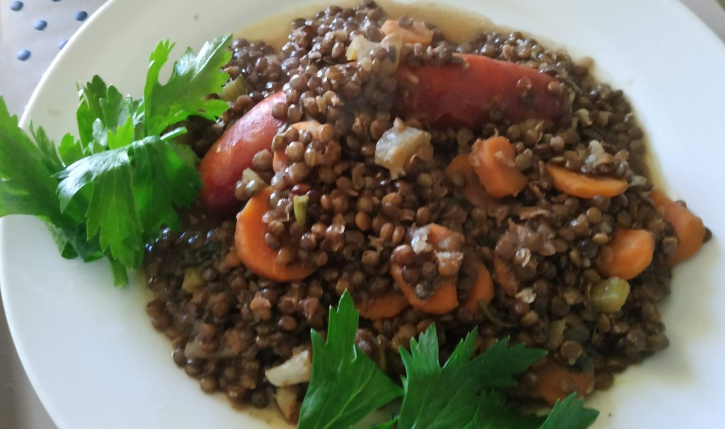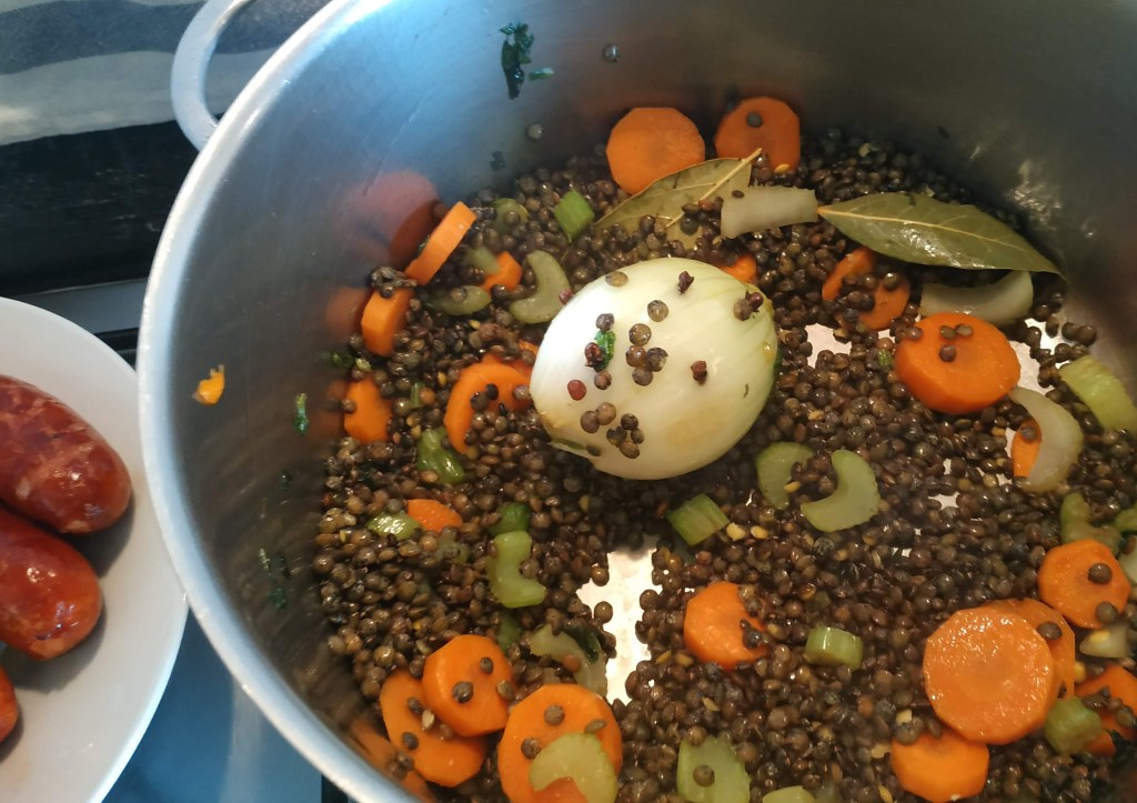 Voici une petite recette simple avec des saucisses, et facilement réalisable chez vous ,que j’ai dénichée pour vous ; qui vous apportera tous les ingrédients nécessaires, et qui vous permettra d’affronter l’hiver en toute sérénité. Les lentilles et toutes les légumineuses sont riches en protéines ( 100gr de lentilles en possèdent autant que 100gr de viande ou 100gr de poissons) mais aussi en minéraux: fer, magnésium, calcium, potassium( elles sont championnes pour leur teneur en potassium),et en vitamines A, et vitamines du groupe B.