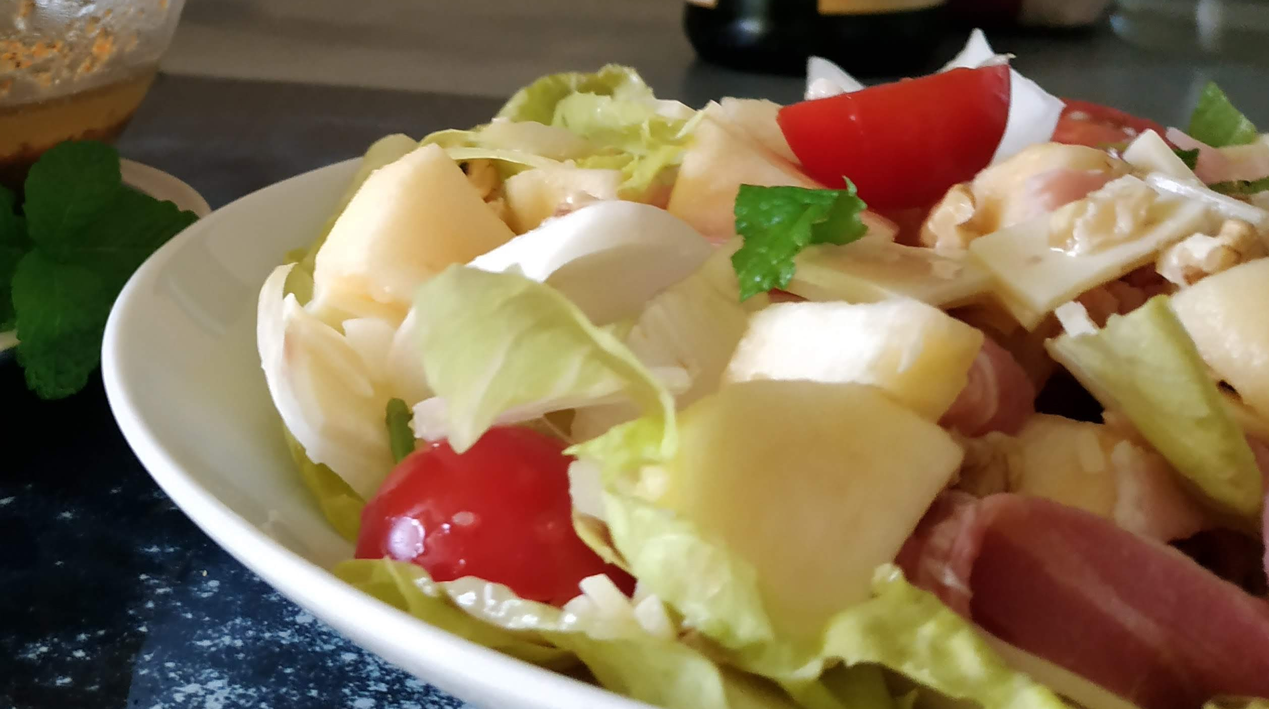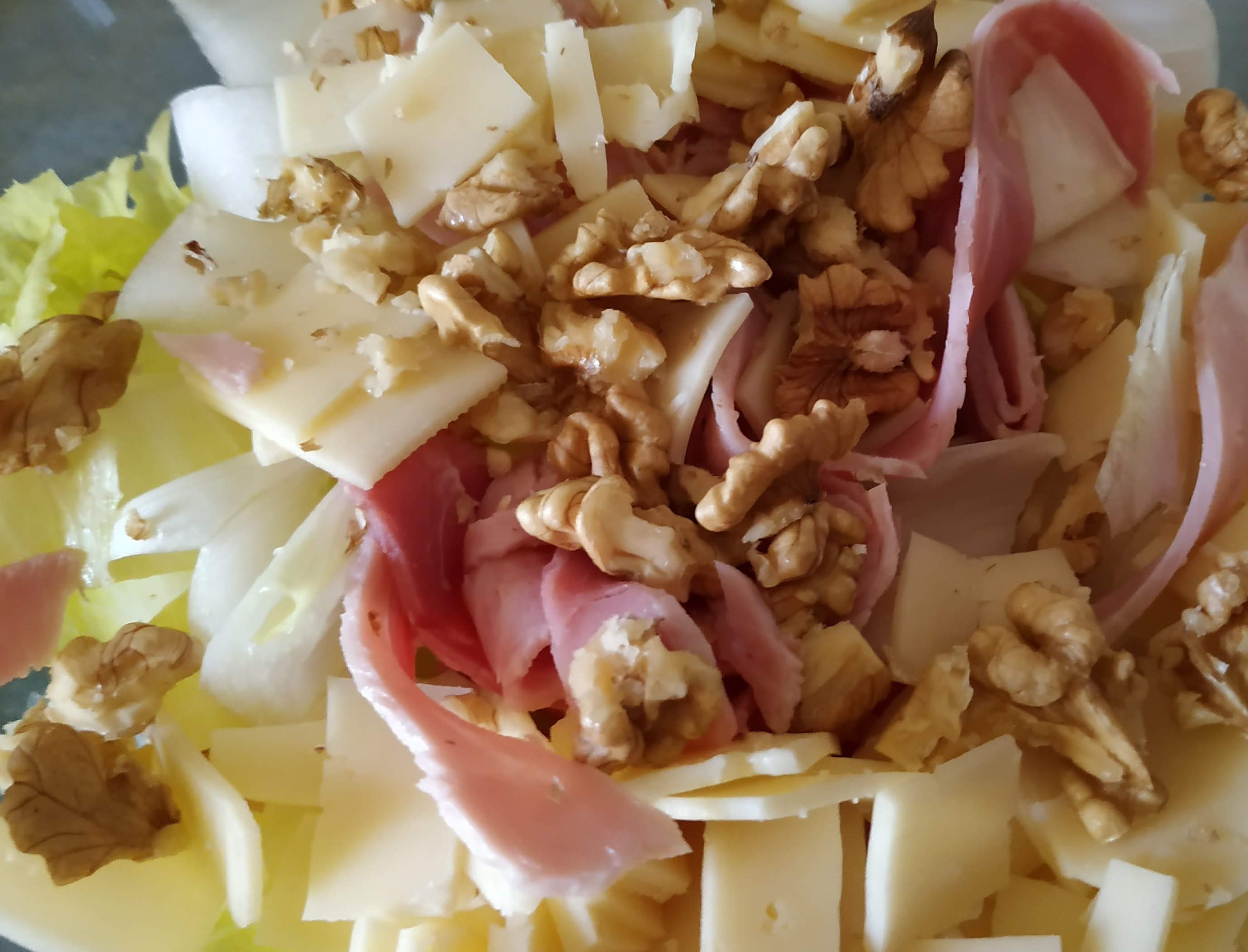 Par exemple, une petite salade fraîche de pommes, de noix ,d’endives, qui sont les reines des étals de tous les marchés en ce moment.