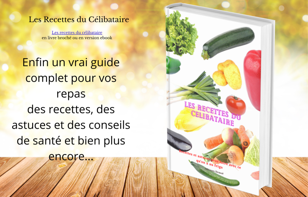 Retrouvez une sélection de mes Meilleures recettes avec plein d’Astuces, dans mon dernier livre : Les RECETTES du CELIBATAIRE vendu sur Amazon au petit prix de 6,00€ (Kindle) ou 13,61€ en livre broché.